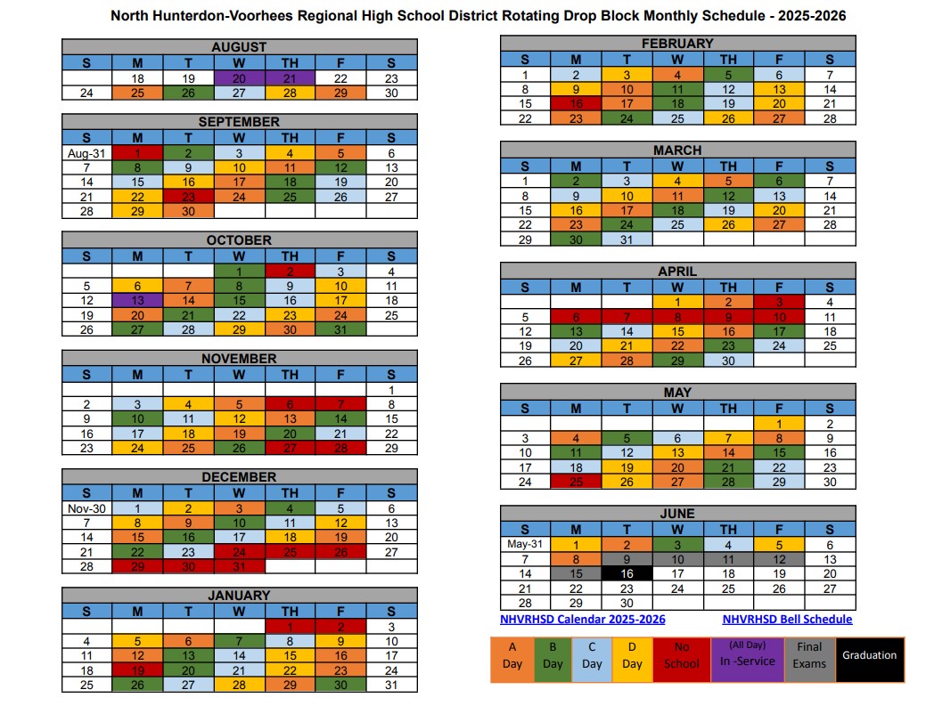 2025-2026 School Year – Rolling Drop Block Monthly Schedule