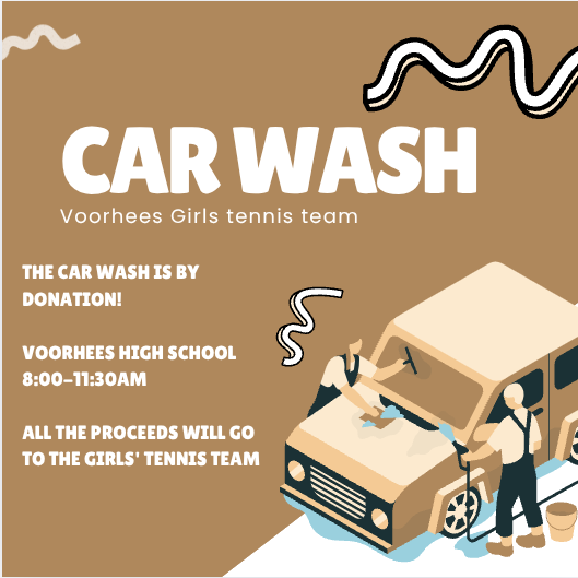 Please consider coming to get your car washed on Saturday, September 20 from 8:00-11:30 in the morning outside the main entrance of Voorhees High School! Price is simply by donation! All proceeds will go directly to the girls’ tennis team!